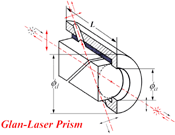 Glan laser prisms is a glan taylor polarizer that is specially designed for high energy application. The side of housing are drilled two holes. The ordinary ray is reflected through an angle and exits the polarizer through one of holes.